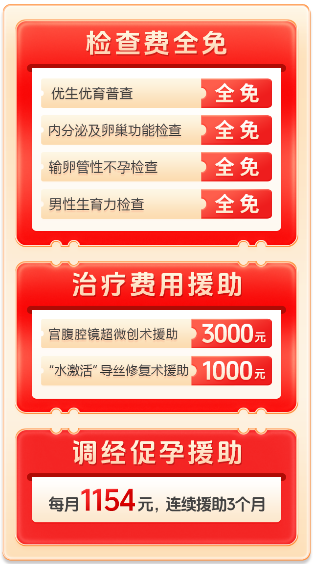 为减轻不孕不育家庭的经济压力,让更多患者获得治疗机会。郑州慈善总会送子公益基金为来院患者提供“优生及不孕普查保障型援助”和“疑难性不孕深度帮扶服务”。患者只需报名登记,即可通过免申报、直接补贴的便捷方式,为疑难复杂疾病患者提供温暖诊疗服务。点击在线咨询,免费申请补助